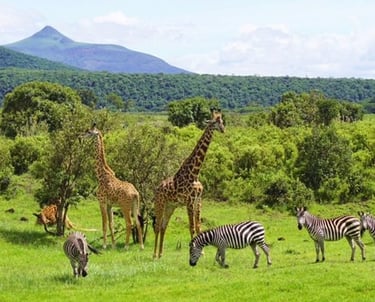 Nestled at the foot of Mount Meru, the park is renowned for its breathtaking landscapes, including dense montane forests, rolling savannahs, sparkling Momella Lakes, and the dramatic Ngurdoto Crater.