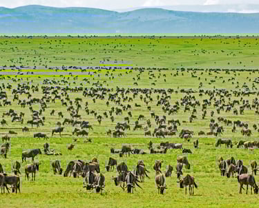 The Serengeti is a vast, untamed wilderness, renowned for its awe-inspiring landscapes and the legendary Great Migration, where millions of wildebeests, zebras, and gazelles journey across the plains.