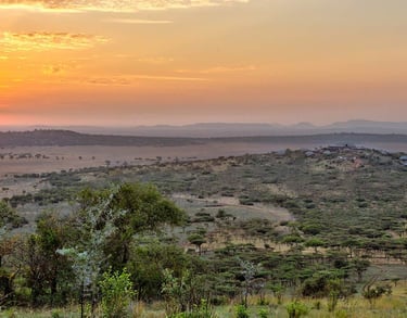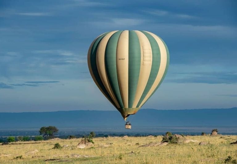 A sunrise hot-air balloon experience over the plains offers unforgettable views of wildlife, landscapes, and the golden Serengeti sunrise.
