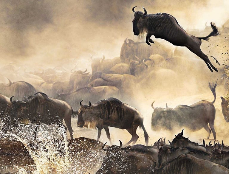 One of the greatest natural spectacles on Earth. Over 1.5 million wildebeests, zebras, and gazelles move across the Serengeti in a dramatic search for fresh grazing.