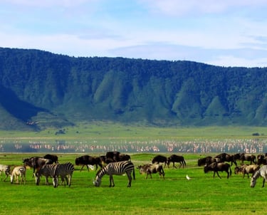 Nestled at the foot of Mount Meru, the park is renowned for its breathtaking landscapes, including dense montane forests, rolling savannahs, sparkling Momella Lakes, and the dramatic Ngurdoto Crater.