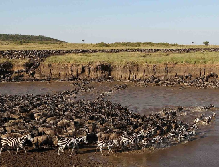 The Serengeti is a vast, untamed wilderness, renowned for its awe-inspiring landscapes and the legendary Great Migration, where millions of wildebeests, zebras, and gazelles journey across the plains.