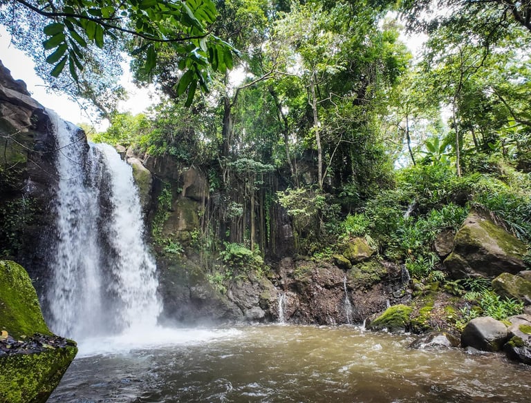 A natural oasis with crystal-clear turquoise water, its perfect for swimming, relaxing, and escaping the city heat. Surrounded by palm trees and volcanic rocks,offers a peaceful, refreshing experience for solo travelers, couples & families.